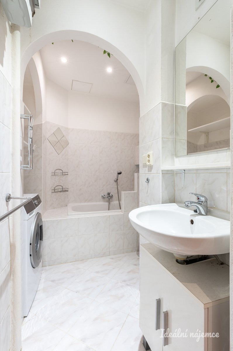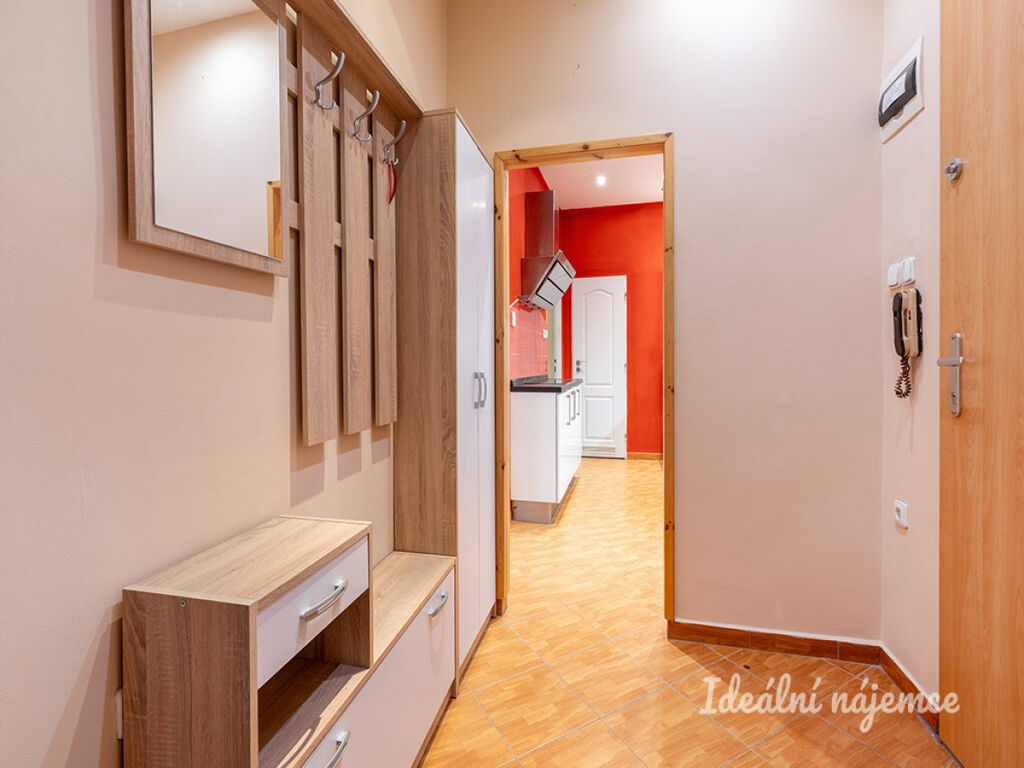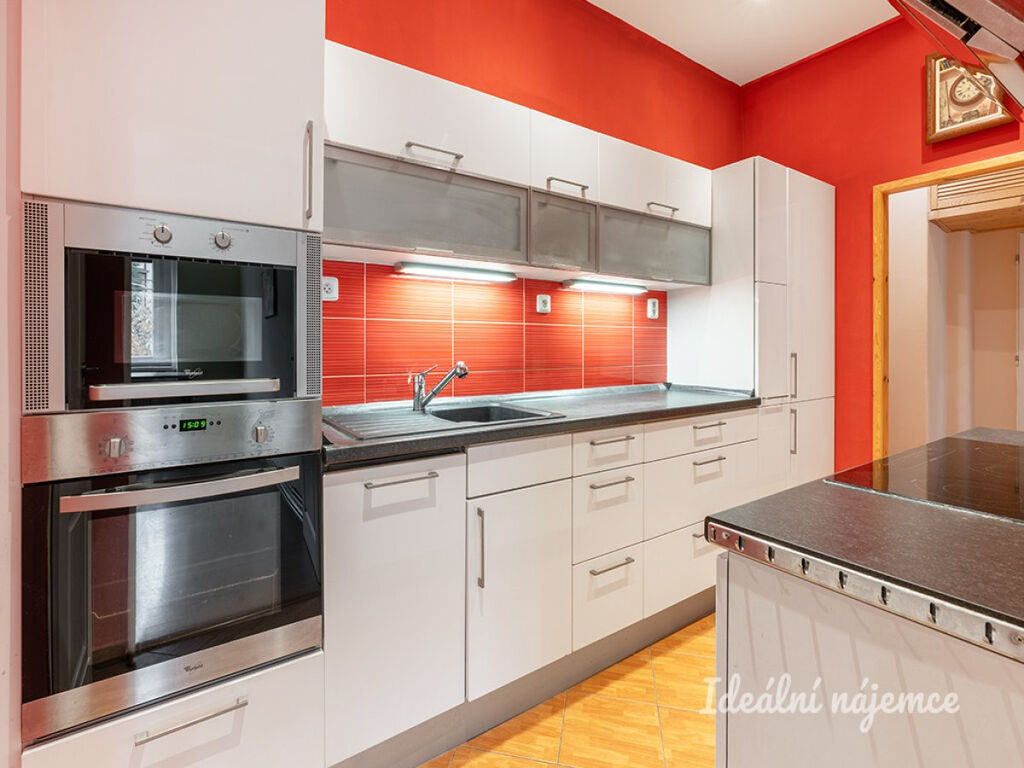 Byt se nabízí částečně vybavený. Kuchyně disponuje lednicí, myčkou, elektrickou troubou, varnou deskou, mikrovlnnou troubou a digestoří. Pokoje jsou částečně vybavené kdy v jenom se nachází postel, v druhém pracovní stůl a vestavná šatní skříň a třetí nabízí skříňky a komody. V koupelně je vana. Toaleta je umístěna samostatně.