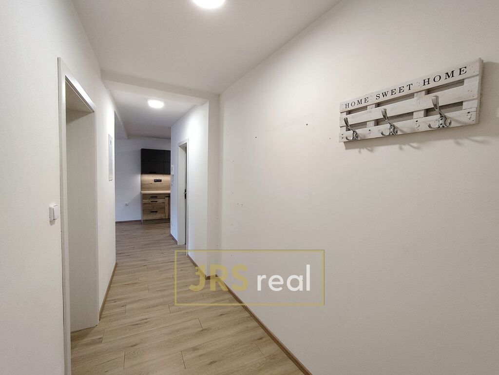 Ve výhradním zastoupení majitele Vám nabízíme k dlouhodobému pronájmu moderní byt 2+kk o podlahové ploše 49 m² v obci Bořetice. Byt se nachází v přízemí domu, který má pouze tři bytové jednotky, což zaručuje klidné a příjemné bydlení. Po vstupu do bytu Vás přivítá předsíň, odkud vstoupíte do samostatné ložnice s dostatkem místa pro manželskou postel i úložné prostory. Naproti ložnice se nachází koupelna se sprchovým koutem, umyvadlem a toaletou. Na konci chodby se otevírá hlavní obytný prostor v podobě obývacího pokoje propojeným s moderní kuchyní. V kuchyni je k dispozici linka vybavená vestavěnou horkovzdušnou troubou, mikrovlnnou troubou, myčkou a sklokeramickou varnou deskou. Tento vzdušný prostor je ideální pro společné chvíle i každodenní život. K bytu náleží také sklepní kóje o velikosti 1,5 m² a parkování je možné pohodlně přímo před domem. Byt má podlahové vytápění, ohřev vody pomocí elektro bojleru, vinylové podlahy a plastová okna. Díky moderním technologiím nabízí byt velmi nízké provozní náklady. Pokud hledáte klidné a moderní bydlení v oblíbené lokalitě s výbornou dostupností do okolní přírody i měst, neváhejte kontaktovat naši makléřku.