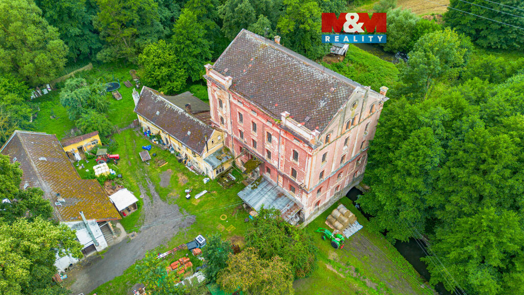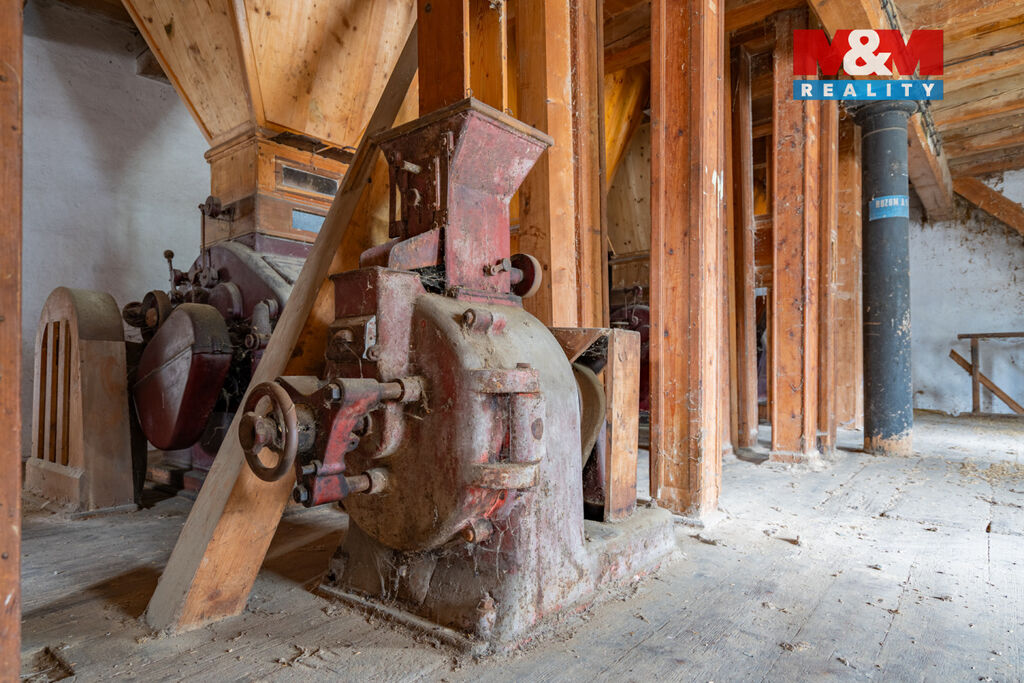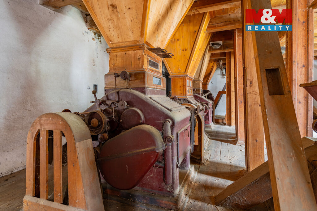 Na prodej nabízíme unikátní areál, jehož dominantou je historický Červený (Zdeborovský) mlýn s původní technologií a autentickými prvky (mlýnské kameny, trámové konstrukce, kamenné zdi). Součástí je i funkční malá vodní elektrárna (MVE) s platným vodním právem, Francisovou turbínou o výkonu 25 kW a vlastním náhonem zajišťující nezávislý provoz. Velkorysé prostory s vysokými stropy otevírají široké možnosti využití – od stylového bydlení, přes turistické či gastro projekty, až po energeticky soběstačné podnikání. K areálu náleží také dva rodinné domy (3+1 a 2+1), přilehlé stavby a vodní plocha. Celý komplex leží na pozemcích o rozloze 41 670 m², z toho 12 217 m² tvoří vodní plocha. Tento unikátní objekt je ideální příležitostí pro investory, podnikatele i všechny, kdo hledají spojení historie, přírody a soběstačné energetiky.