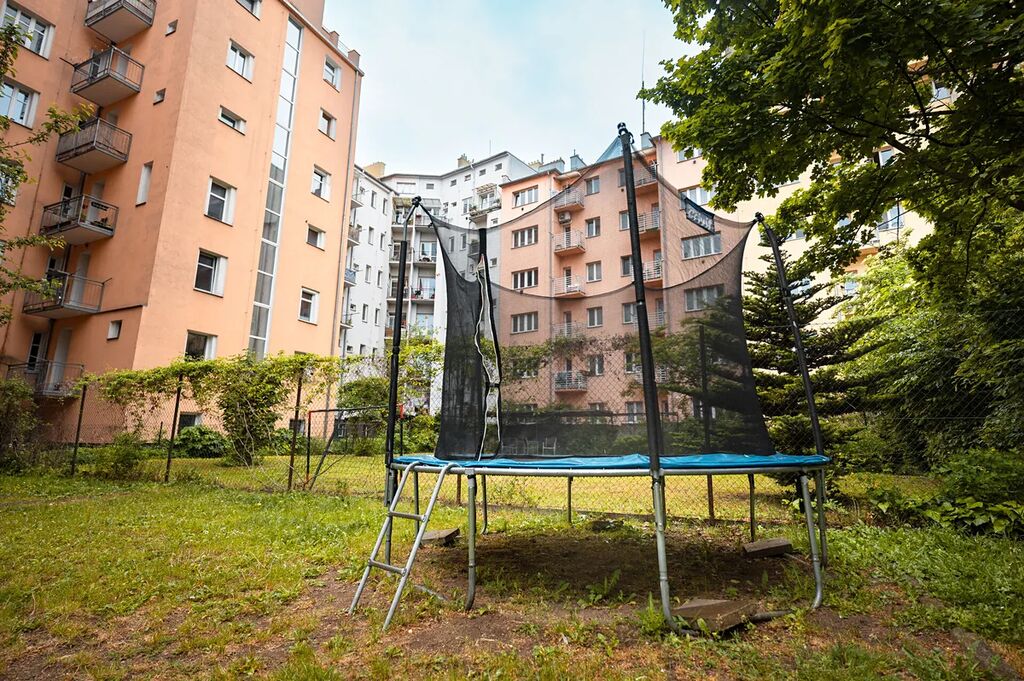 Součástí domu je velká a udržovaná zahrada ve vnitrobloku, určená pouze pro obyvatele. Nabízí příjemné místo k odpočinku v zeleni, přestože se dům nachází v těsné blízkosti centra města. K bytu náleží sklep o velikosti 8 m².