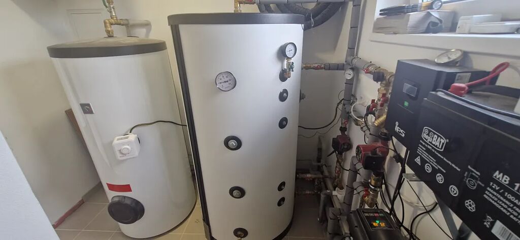 Vytápění je řešeno krbem s výměníkem napojeným na akumulační nádrž o objemu cca 500 litrů. V domě je rovněž instalováno teplovodní podlahové vytápění, které zajišťuje komfort a úsporu energie. Jako alternativní zdroj je připraven také elektrický kotel. Plastová okna s trojskly mají přípravu pro venkovní žaluzie nebo rolety. Vchodové dveře a posuvný portál na terasu jsou z hliníku. Střecha je zateplena stříkanou izolací.