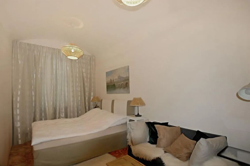Nabízíme k pronájmu vkusně zařízený byt 1+1 o celkové ploše 30 m2. Byt se nachází v přízemí čistého činžovního domu. Dispozici bytu tvoří 2 místnosti, jeden pokoj tvoří společenskou část bytu, je vybaven jídelním koutem, dále kuchyňskou linkou, varnou deskou a lednicí s mrazákem. Tento pokoj je orientovaný na jih s výhledem do vnitrobloku a na pěkný dvoreček, který je možno využívat k odpočinku. Další místnost je vybavena dvoulůžkem, kompletně zařízená. Na podlahách nové dubové parkety. Vytápění elektrické lokální - 2 x AKU. Koupelna disponuje sprchou, umyvadlem a WC. Místnost sloužící jako prádelna s pračkou a sušičkou patřící k bytu je umístěna přes chodbu.