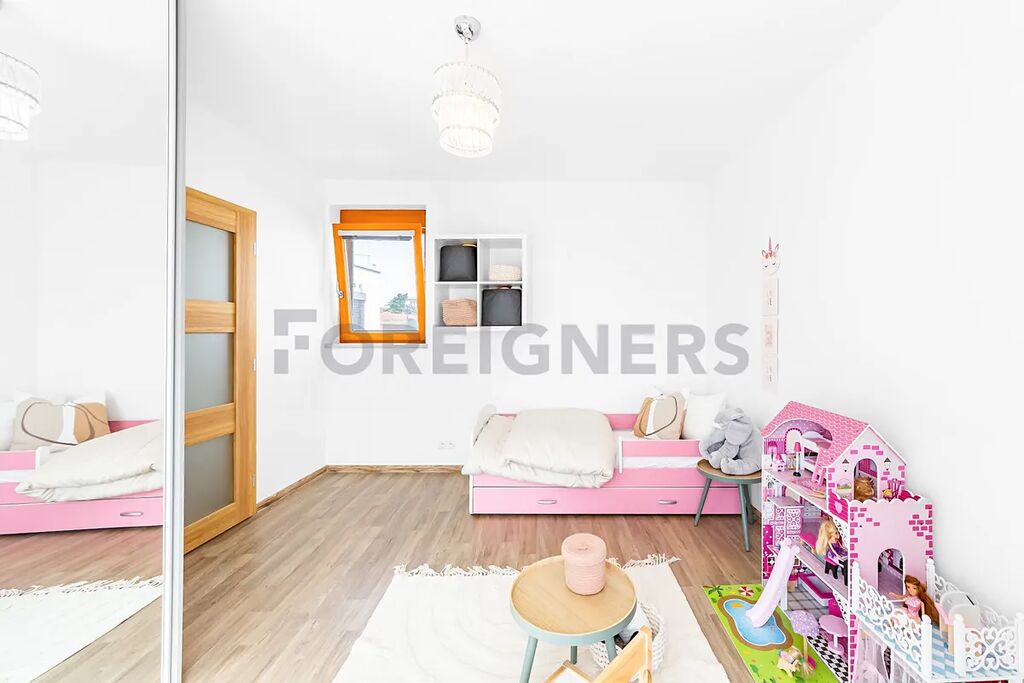 Ve druhém podlaží naleznete ložnici se vstupem na horní terasu. Dětský pokoj zajistí vašim dětem ideální prostředí pro hraní i odpočinek. Koupelna s vanou a WC je navržena tak, aby splnila všechny vaše potřeby.
