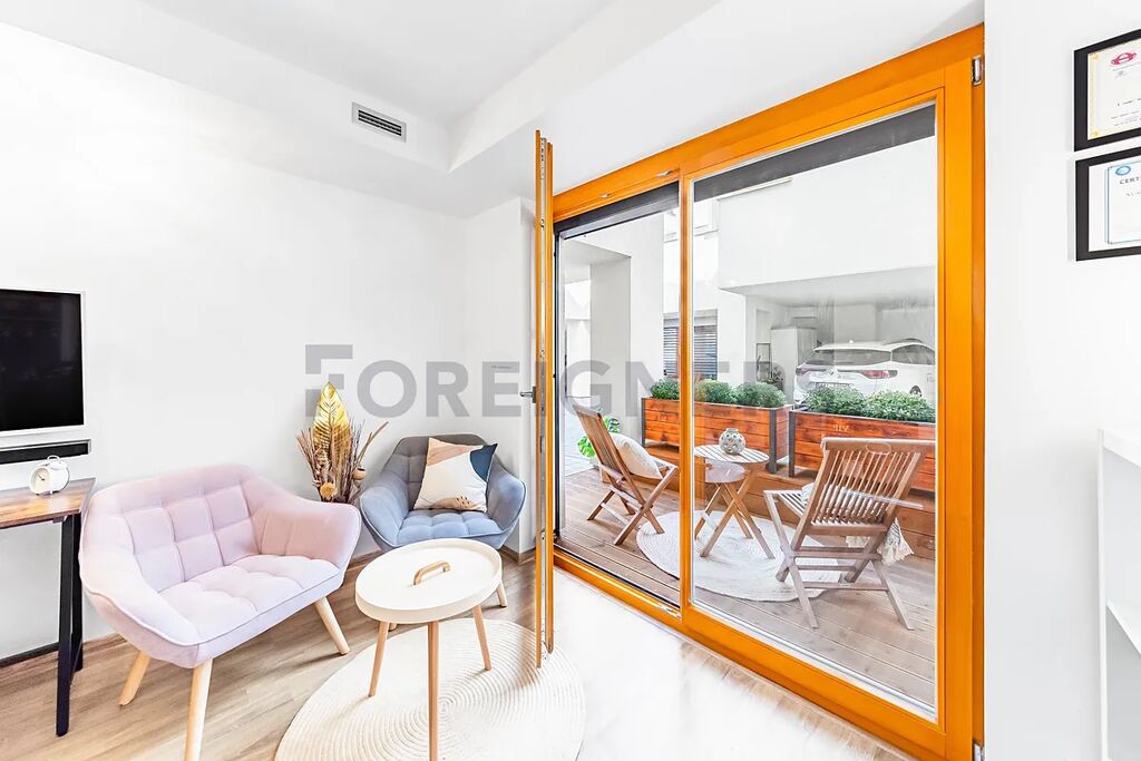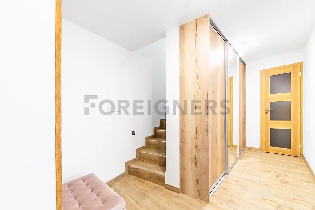 Byt má podobu řadového domu. Nemovitost však byla zkolaudována jako 2 bytové jednotky. Při vstupu do domu vás přivítá prostorná chodba s vestavěnou šatní skříní, která poskytuje dostatek úložného prostoru. Přízemí nabízí útulnou pracovnu s prosvětleným francouzským oknem a přístupem na jednu z teras. Dále je zde koupelna a technická místnost.