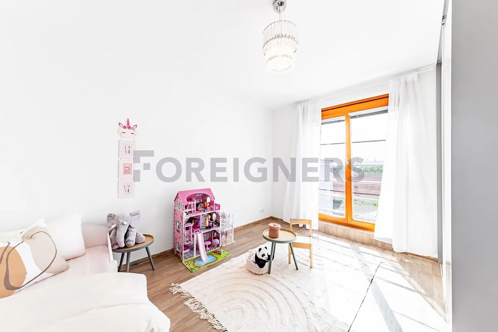 Ve druhém podlaží naleznete ložnici se vstupem na horní terasu. Dětský pokoj zajistí vašim dětem ideální prostředí pro hraní i odpočinek. Koupelna s vanou a WC je navržena tak, aby splnila všechny vaše potřeby.