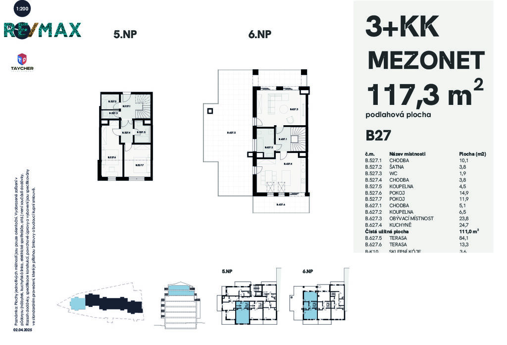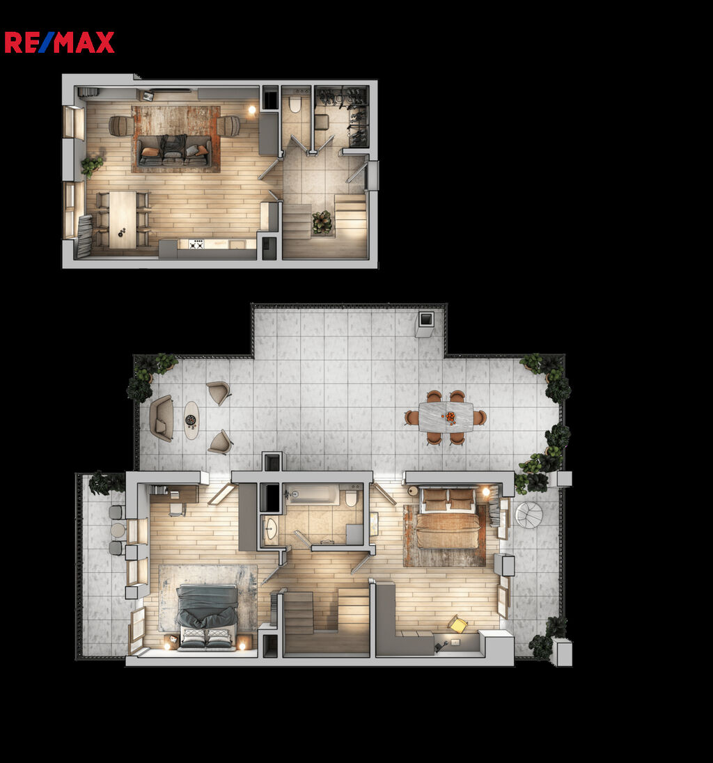 Představuji vám překrásný 122 m2 velký mezonetový apartmán typu 3+kk s panoramatickou terasou o celkové ploše 113,3m2.