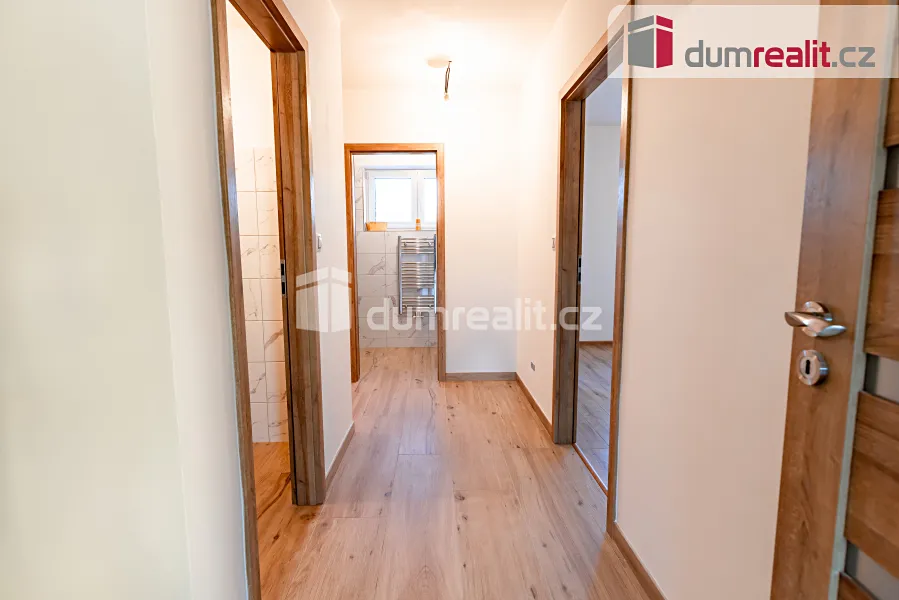 Ve 2. patře se nachází tři neprůchozí pokoje, wc, koupelna s vanou a vstup na půdu, kde je úložný prostor a revizní výlez ke komínu.