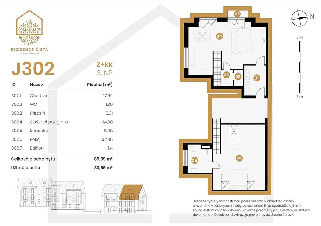 Rekreace, bydlení a investice, která dává smysl! Apartmán se nachází ve 3. NP a v podkroví třípodlažní rezidence, která se právě staví – dokončení podzim 2026. Plocha apartmánu činí 83,99 m2 + balkon 1,4 m². K dispozici máte prostorný obývací pokoj s kuchyňským koutem o velikosti 34,3 m2 se vstupem na balkon a v podkroví je prostorná ložnice 32,85 m2. V bytě naleznete WC s umyvadlem v dolním podlaží bytu a krásnou koupelnu s toaletou v podkroví, přístupné z ložnice. V bytě máte k dispozici dostatek úložných prostor. Další nabídku apartmánů 1+kk – 2+kk s balkony o velikosti 43 – 93 m2 vám rádi zašleme.