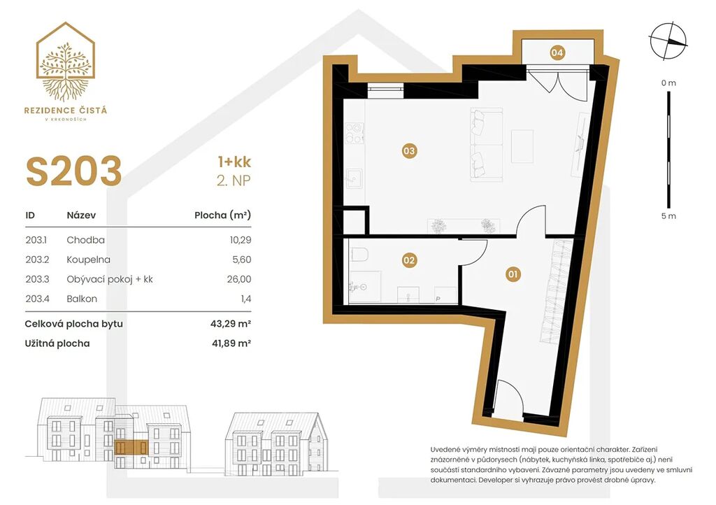 Rekreace, bydlení a investice, která dává smysl! Apartmán se nachází ve 2. NP třípodlažní rezidence, která se právě staví – dokončení podzim 2026. Plocha apartmánu činí 41,89 m2 + balkon 1,4 m². K dispozici máte prostorný obývací pokoj s kuchyňským koutem o velikosti 26 m2 se vstupem na balkon. V bytě naleznete krásnou koupelnu s toaletou a dostatek úložných prostor. Další nabídku apartmánů 1+kk – 2+kk s balkony o velikosti 43 – 93 m2 vám rádi zašleme.