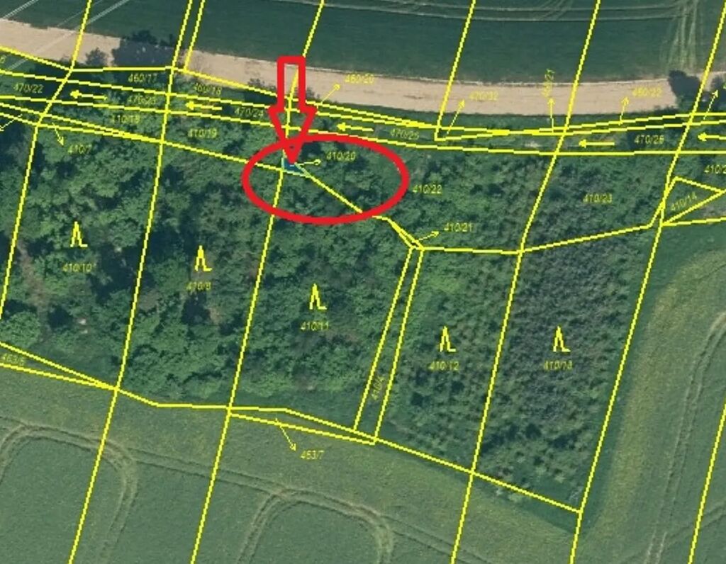 - p.č. 410/4 o výměře 104 m2 vedené jako lesní pozemek,