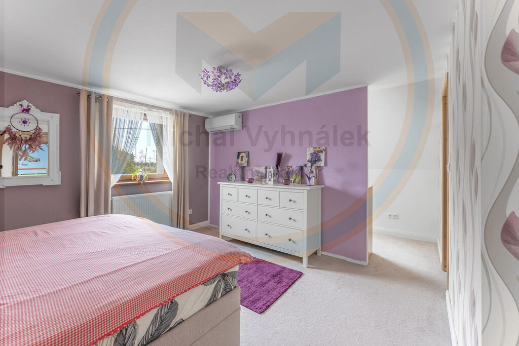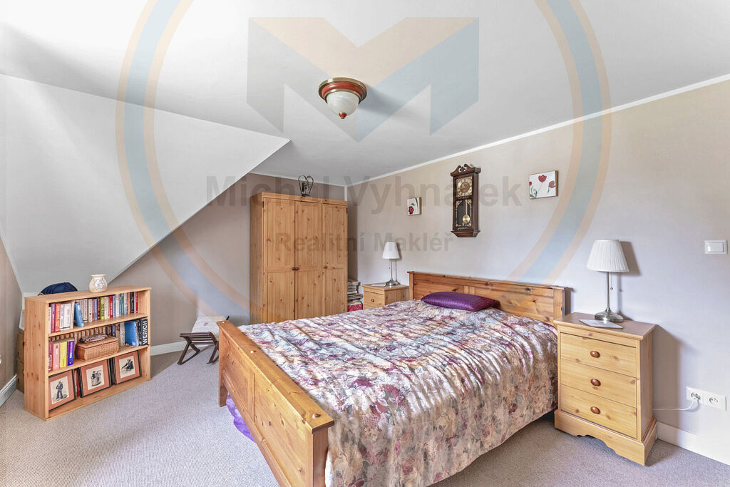 V patře (2. NP) se nachází tři samostatné pokoje (aktuálně využívány jako ložnice), z jednoho je vstup na terasu. K dispozici také koupelna v anglickém stylu en-suite. Největší ložnice má šatnu a klimatizační jednotku.