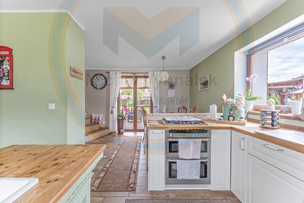Dům se prodává bez vybavení. Kuchyňský kout a vybavení koupelen zůstává.