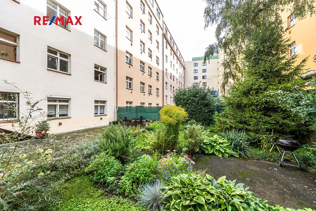 K bytu náleží sklepní kóje v suterénu domu. Obyvatelé domu mohou využívat společnou kolárnu a kočárkárnu a přístup do udržovaného vnitrobloku se zelení – ideální místo pro relax. Nemovitost je v původním, udržovaném stavu a nabízí budoucím majitelům možnost rekonstrukce podle vlastních představ.