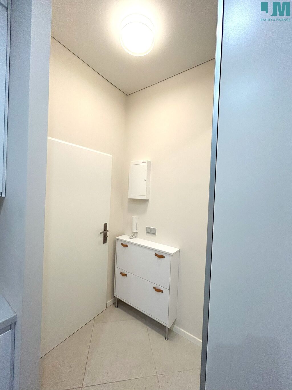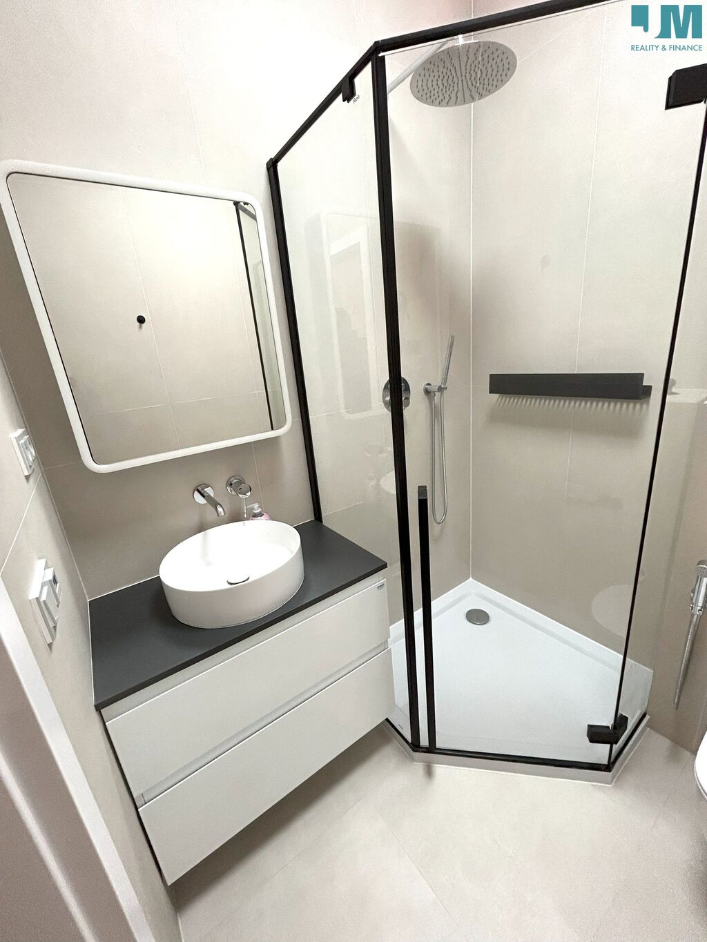 plně vybavená kuchyňská linka: lednice, mikrovlnná trouba, indukční deska, pračka (bude součástí pronájmu), pečicí trouba a myčka,