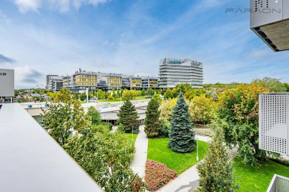 Pronájem zcela nového, moderního, slunného bytu 2+kk (48,8 m) s balkonem (4 m), garážovým stáním a sklepem, který se nachází v 5.podlaží oblíbené Rezidenci Paprsek Stodůlky v jedné z nejoblíbenějších rezidenčních oblastí Prahy s jedinečnou kombinaci klidného bydlení v blízkosti přírody a zároveň skvělé dopravní dostupnosti do centra města. Dostupnost do centra města je vynikající stanice metra B Stodůlky je vzdálena pár minut chůze od domu, autobusové linky i přímé napojení na městský okruh a dálnici D5 zajišťují skvělou dopravní obslužnost.