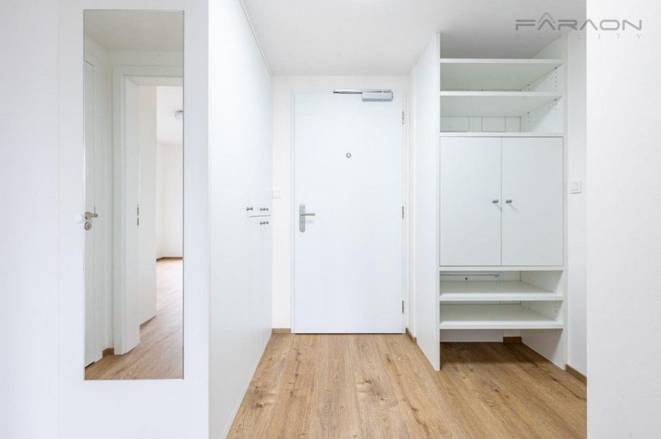 Vybavení bytu zahrnuje moderní kuchyňskou linku se spotřebiči elektrickou troubou, indukční varnou deskou, myčkou a lednicí s mrazákem a dostatek úložných prostor včetně vestavěných šatních skříní. V bytě je instalováno podlahové topení, rekuperace, elektrické předokenní rolety, kvalitní osvětlení, plastová okna s izolačními skly a vinylová podlaha v dekoru dřeva. Byt disponuje kompletně vybavenou předsíní s úložnými prostory a skříněmi vše je nové a připravené k okamžitému užívání.