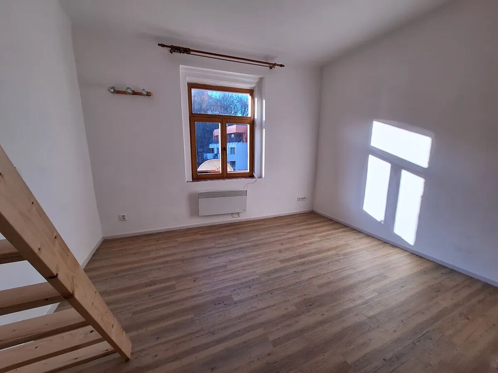 Pěkný byt 1kk (26 m2) s patrem na spaní, Pod Kavalírkou, Praha 5. Byt v 5 podlaží s výtahem. Byt je po rekonstrukci kuchyně, nová linka s vestavěnými spotřebiči. Dřevěné patro na spaní.