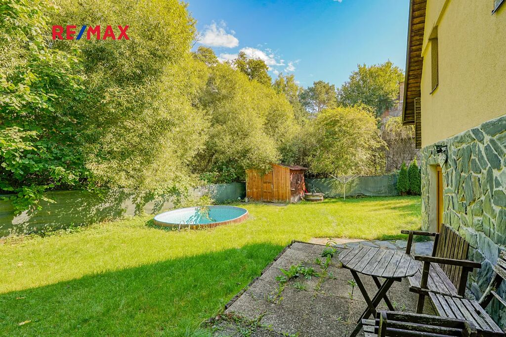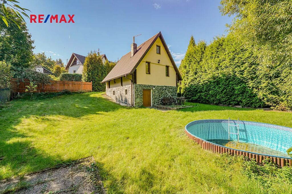 Chata je rozložena do tří podlaží, v 1. podlaží se nachází vstupní chodba a místnost kterou lze využít například jako dětský pokoj. Ve 2. podlaží se nachází obývací pokoj s krbem, kuchyní a koupelnou se sociálním zázemím. Ve 3. podlaží nalezneme další pokoj který lze využít například jako dětský pokoj, ložnici a nebo pracovnu. Dále je na zahradě k dispozici polozapuštěný bazén a domek pro zahradní náčiní. Díky vysokým vzrostlým stromům po obvodu pozemku nabízí zahrada dostatek klidu a soukromí. Chata prošla 10 let zpět kompletní rekonstrukcí včetně zateplení, je vybavena plastovými okny s dvojskly, elektroinstalací kompletně v mědi, plovoucími podlahy a střechou z plechové taškové krytiny. Vytápění je zde řešeno pomocí krbu a ohřev vody pomocí elektro bojleru.