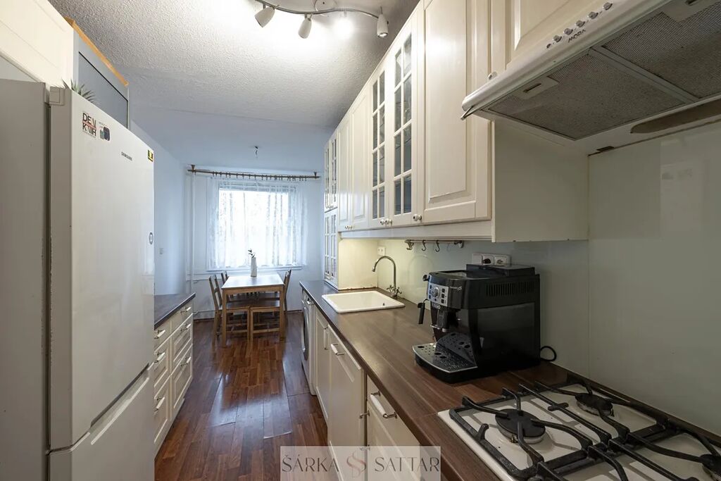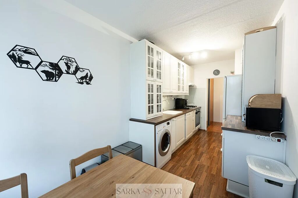 Tento částečně zrekonstruovaný byt má prostorný obývací pokoj 19m2 se vstupem na lodžii, dále samostatnou kuchyň 11m2 el.trouba, plynová varná deska, lednice, mrazák, myčka, digestoř, pračka. Obývací pokoj a kuchyň je možné propojit. Ložnice (13m2 a 12m2) jsou orientovány na klidnou stranu s výhledem do zeleně a směrem nádrž Petrovice. Koupelna má vanu, umyvadlo a je po rekonstrukci stejně jako toaleta. Na předsíni jsou prostorné vestavěné skříně.