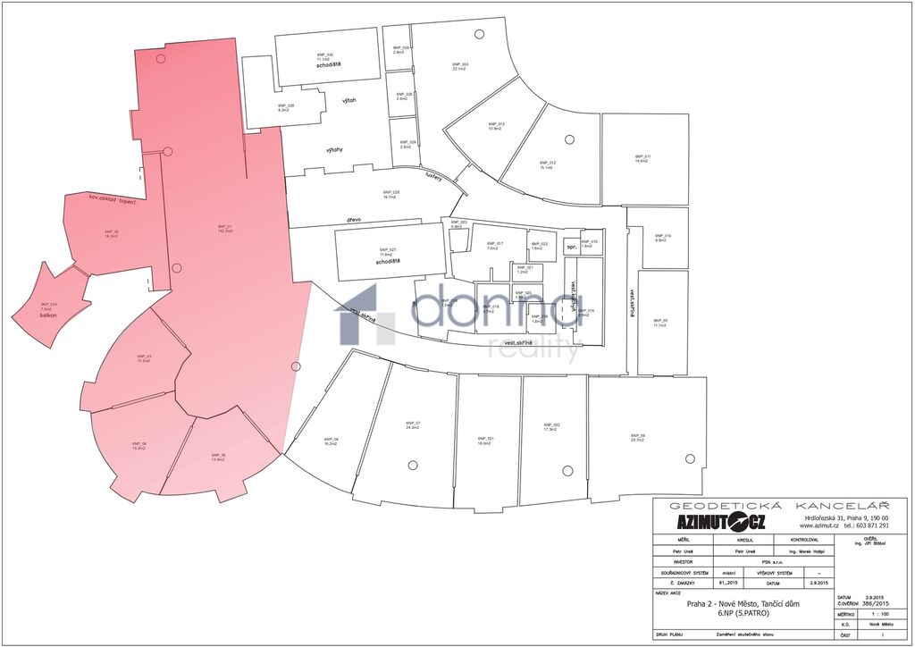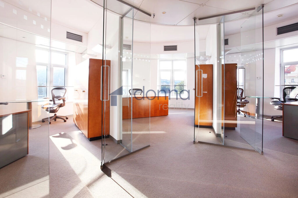 Jedná se o kancelář, která se nachází v 6. patře s balkonem a výhledem na Pražský hrad v nejznámější budově v Praze.