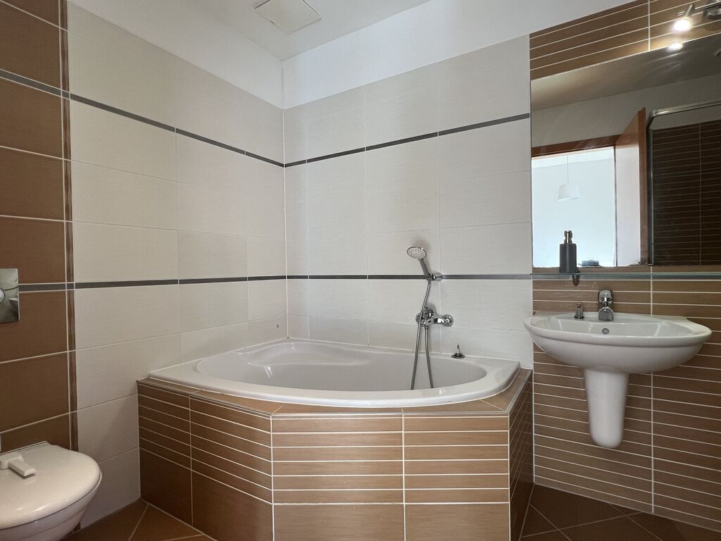 Byt má dvě toalety, koupelnu s vanou i sprchovým koutem, a také samostatnou technickou místnost s pračka.
