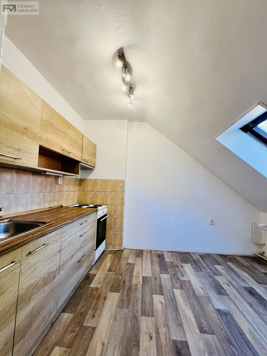 Nabízíme k pronájmu prostorný podkrovní byt 1+1 v Ostravě. V předsíni je šatní skříň, v kuchyňské lince plynový sporák. Koupelna a WC jsou samostatně. Díky střešním oknům máte v bytě nádherné světlo a výhled na okolní zeleň a vzhledem k poslednímu podlaží také klid a ticho. Parkování je možné před domem, Všechny služby a instituce jsou v dosahu pěší vzdálenosti, stejně jako hromadná doprava. Kolem domu je vzrostlá zeleň, takže si připadáte, že bydlíte v parku. Poplatky za služby jsou 2800,- Kč měsíčně, nájem 7000,- Kč, provize 7000,- Kč a vratná kauce 14000,- Kč nebo místo kauce roční pojištění 3500,- Kč.