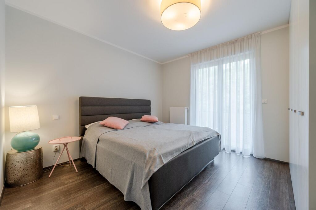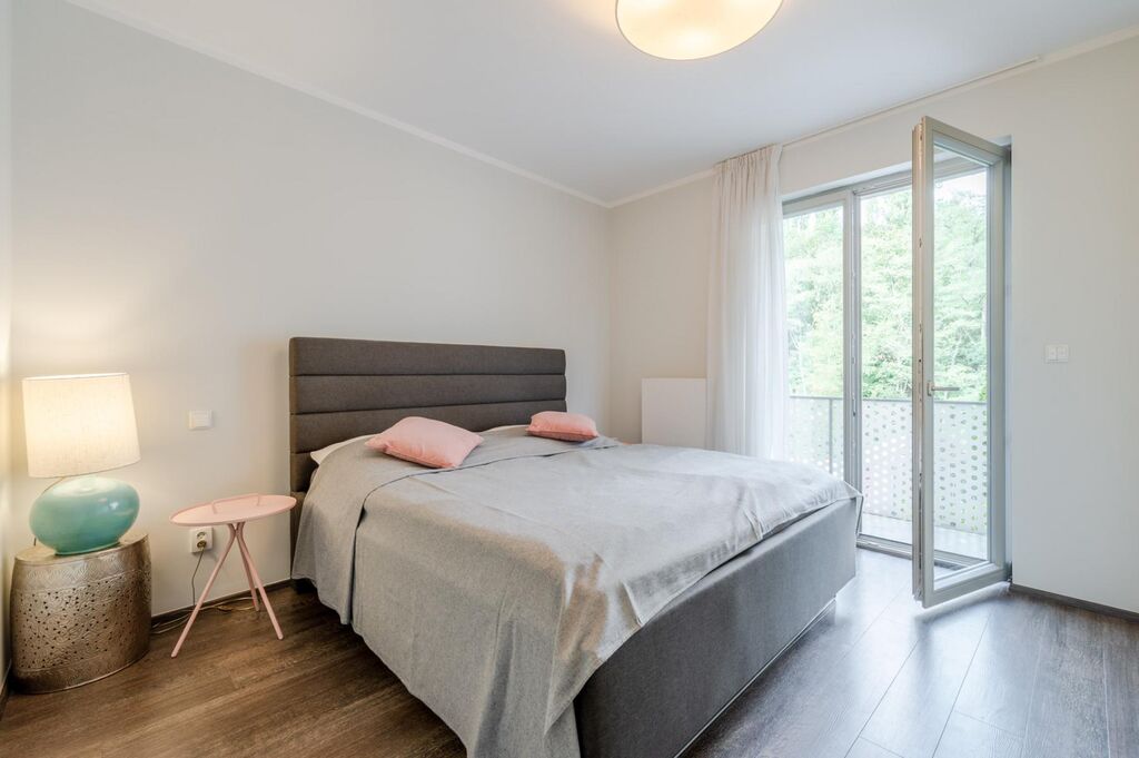 Byt o velikosti 67,4 m2 s balkonem orientovaným do parku Vítkov, má výbornou praktickou dispozici s velkorysým obývacím pokojem s kuchyňským koutem, ložnicí s balkonem, halou, koupelnou a toaletou. Okna jsou vybavena venkovními žaluziemi a jsou odhlučněna pro dokonalé soukromí a klid. Byt má rekuperaci a je zajištěn bezpečnostními dveřmi. K bytu náleží vyhrazené parkovací místo (13,9 m2) umístěné v suterénu budovy a prostorný sklep (3,4 m2). Obyvatelům domu je k dispozici kolárna.