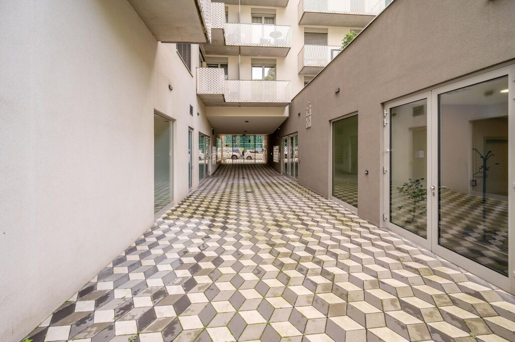 Zadní část domu je lemovaná udržovanými trávníky, chodníky, schody a okrasnými keři, volně se napojuje na park Vítkov a cyklostezku. Příjemnou procházkou se dostanete do parku Parukářka nebo tunelem pro pěší a cyklisty do Karlína. V docházkové vzdálenosti od domu jsou všechny 3 linky metra a hlavní vlakové a autobusové nádraží. Dům obdržel výborné hodnocení energetické úspornosti třídy B.