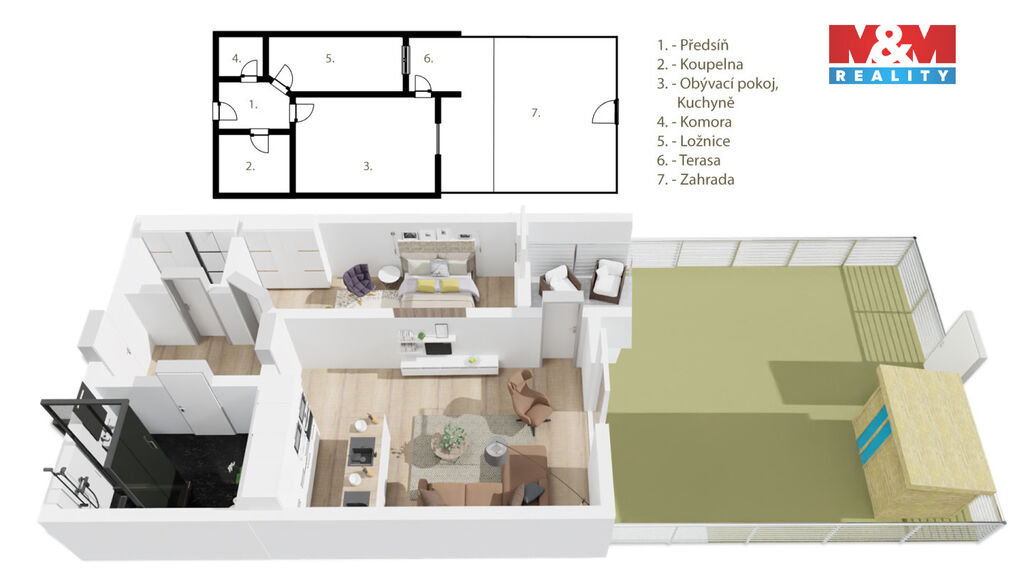 Terasa i oplocená udržovaná zahrádka jsou situovány k jihu, směrem do zeleně, kde si v klidu můžete vypít svoji ranní kávu či jen tak relaxovat. Bezbariérový vstup na zahrádku z bytu i parku ocení především maminky s kočárkem. Byt je ihned k nastěhování.
