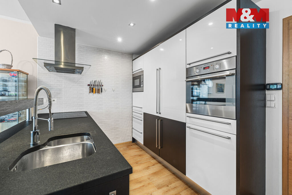 Vytápění i ohřev vody zajišťuje plynový kotel zn. Baxi. Kuchyňská linka je vybavena vestavnými spotřebiči zn. Elektrolux, lednice je zn. Mora.