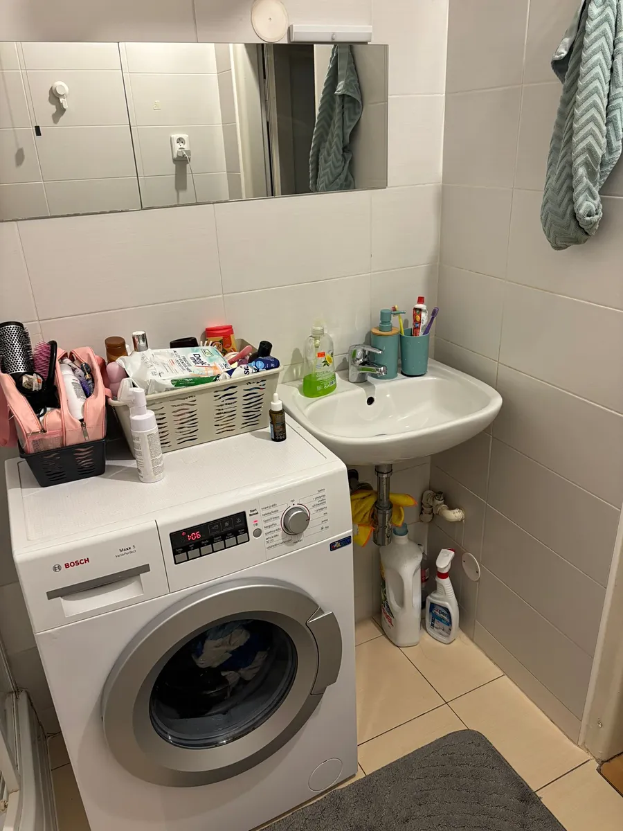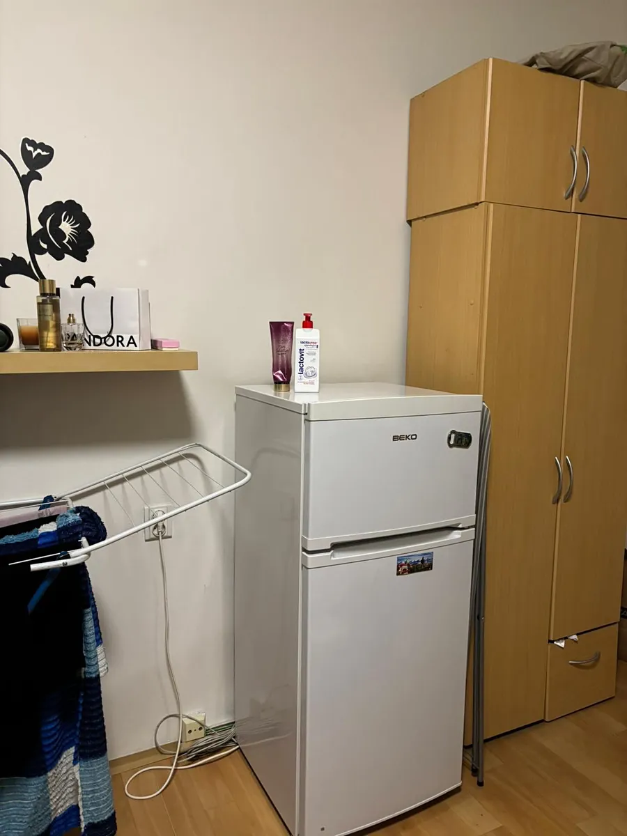 Byt se skládá z pokoje s kuchyňským koutem, koupelny s toaletou, sprchovým koutem a pračkou, vstupní chodby a komory.