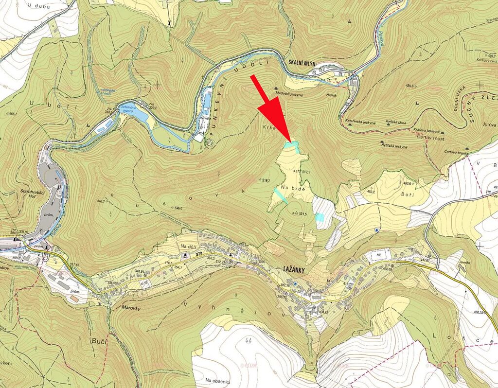 Prodáme pozemek, rovinatou louku na kopci v k.ú. Lažánky u Blanska, v těsné blízkosti Moravského krasu, Punkevních jeskyní (chráněné území nezasahuje na louku), parc.č. 573/5.