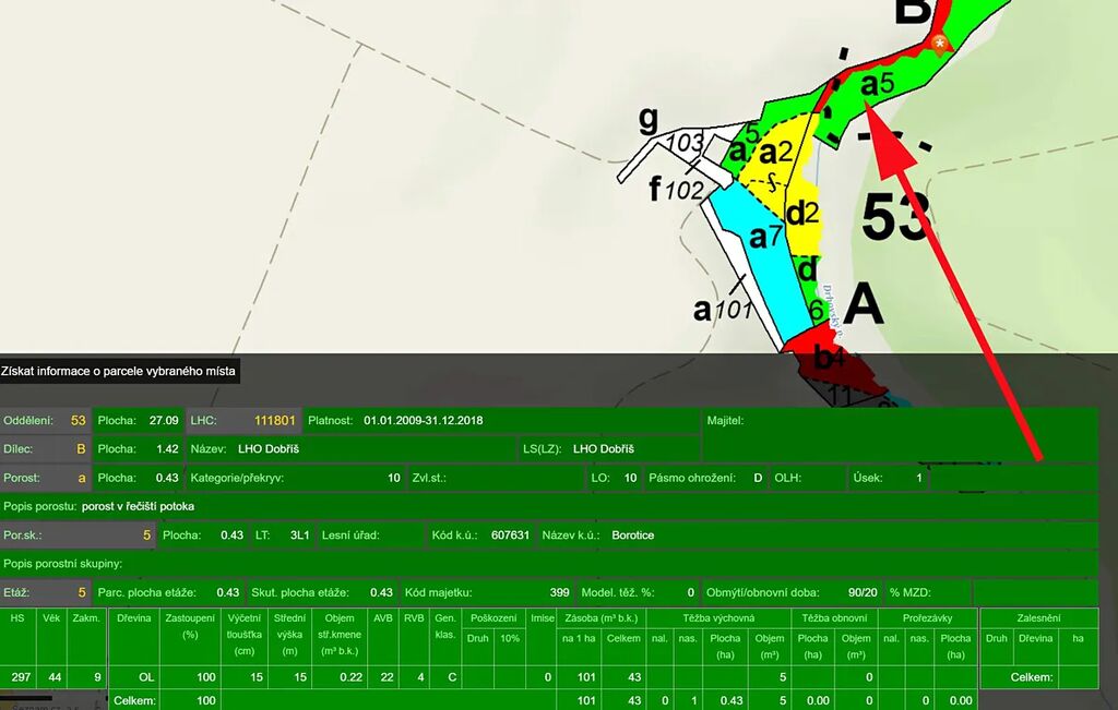 Prodáme pozemek - les blízko obce, v k.ú. Borotice, parcelní číslo 442.