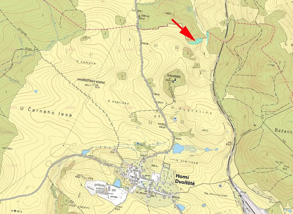 Prodáme pozemek, louku s porostem stromů (možno vytěžit) v k.ú. Horní Dvořiště, parc.č. 2136/2.