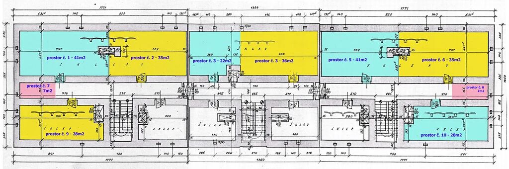 Mimořádná nabídka prostorů v Praze 6, ca 200m vzdušnou čarou od hotelu Internacional, ca 150m od Tram a žst. Nádraží Podbaba. Suché, čisté, skvěle odvětrané prostory v 2.PP bytového cihlového domu. Do prostor vedou 3 schodiště a 2 funkční nákladní výtahy z chodníku (pro břemena max 120x120x150cm, 500kg, ostatní nutno po schodech). Původně určeno pro skladování zeleniny, možno využít jako sklady, archiv apod. Vysoké (ca 3,5m), klenuté stropy. K dispozici až 10 různých skladů 7m2 / 22m2 / 28m2 / 35m2 / 41m2 / 58m2 / 76m2. Celkem až 400m2.