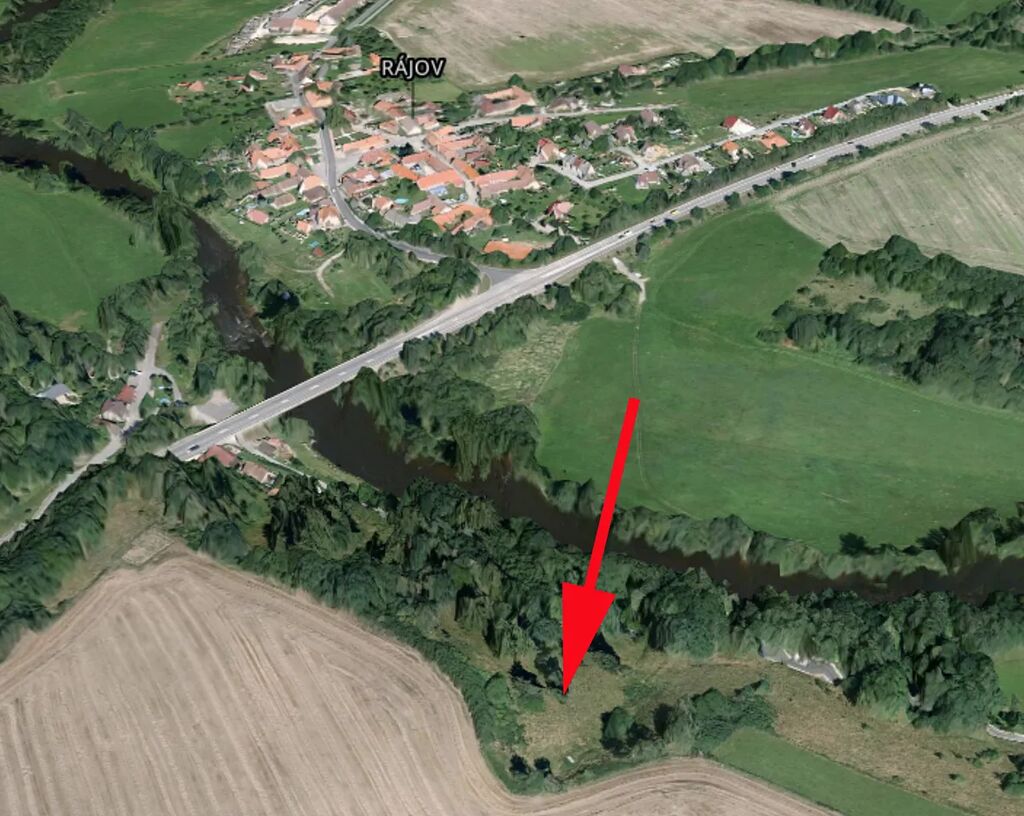 Pozemek je poblíž břehu Vltavy a je skvěle dostupný z obecní asfaltové silnice.