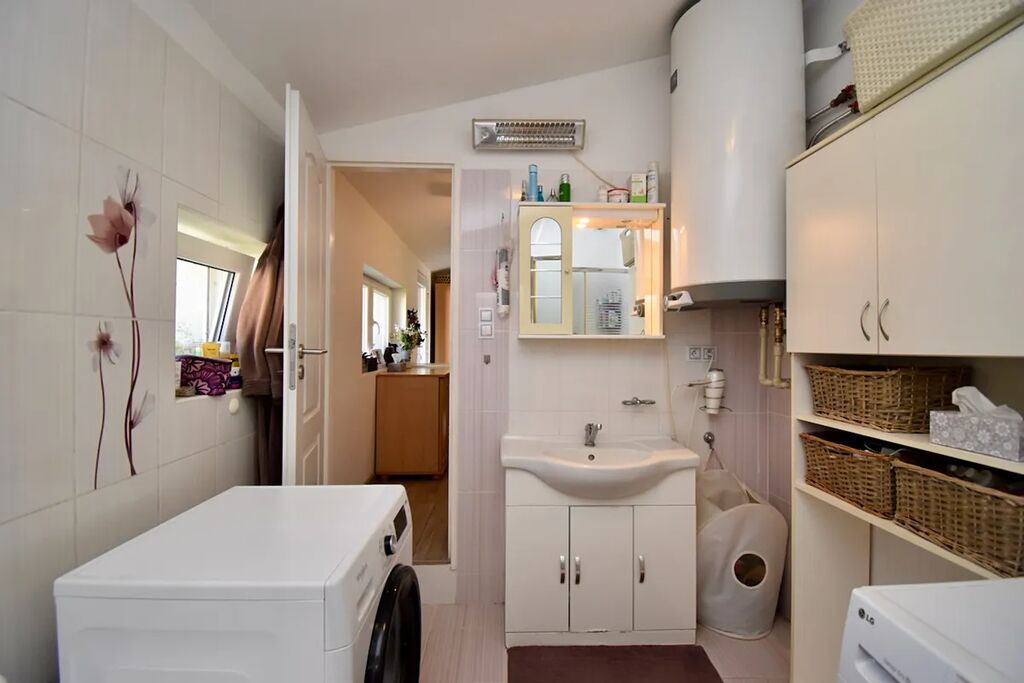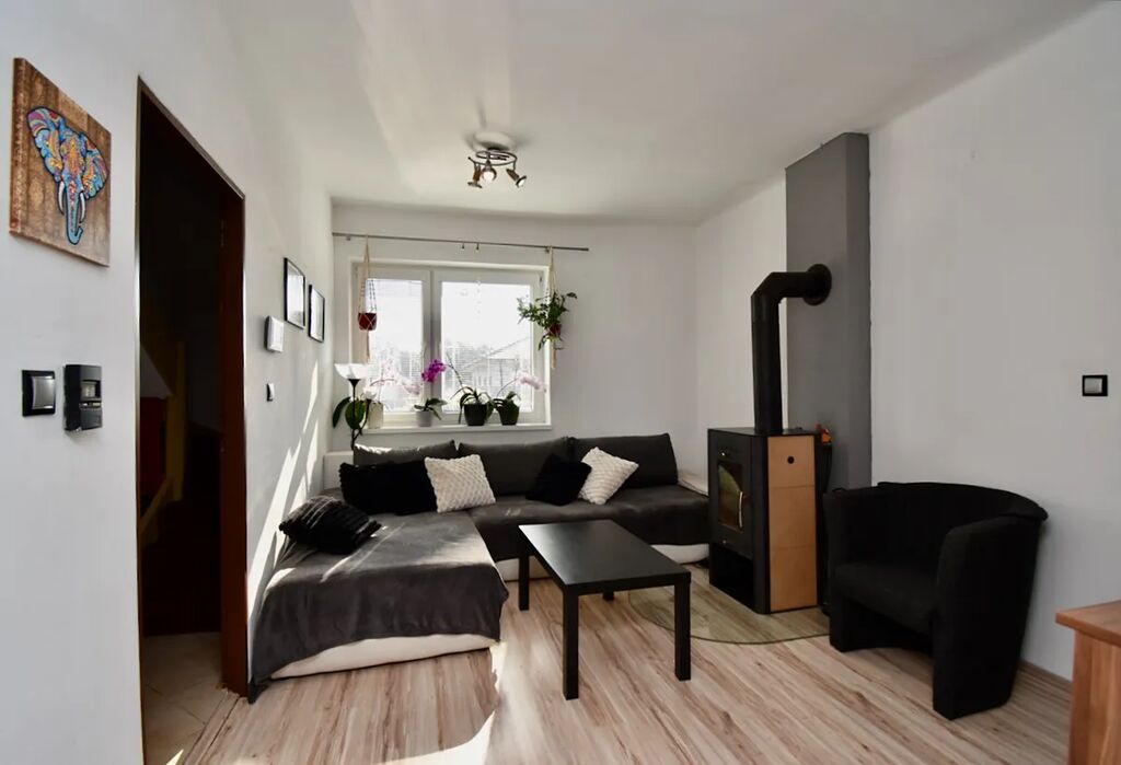 Topení v domě zajišťují dva zdroje, elektrokotel Protherm 18 kW a krbová kamna s výměníkem, která jsou napojena i na ohřev vody - kombinovaný bojler. Komín je řádně vyvložkovaný zateplený z nerezu, majitelé mají k dispozici pravidelné revize, též jsou k dispozici i revize elektroinstalace. Dům je napojený na vodovod, kanalizaci, plyn je na hranici pozemku a k dispozici je i vlastní studna, která se využívá na zalévání i napouštění bazénu.