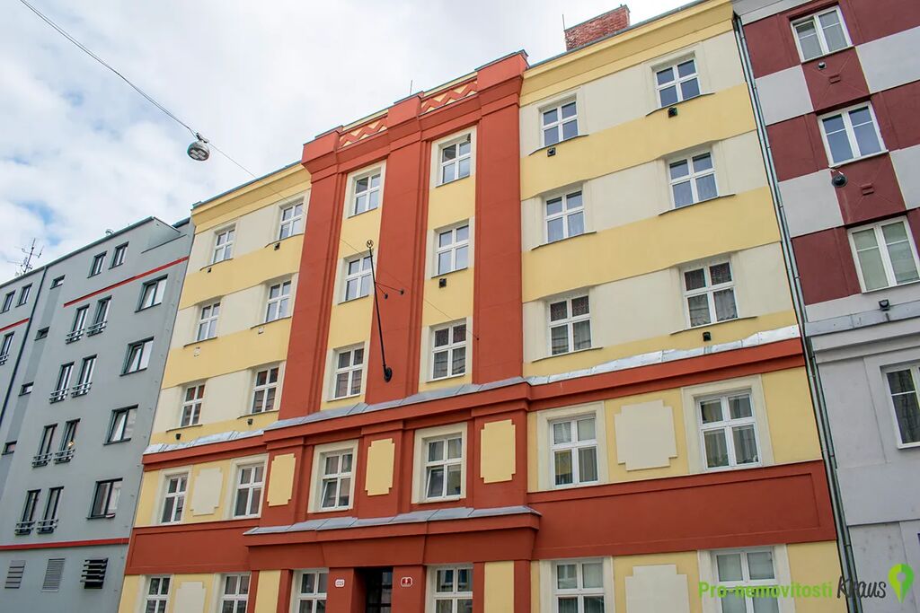 Byt o výměře 46 m² se nachází ve čtvrtém patře cihlového bytového domu s výtahem.