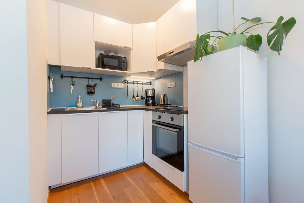Byt je zařízený. Kuchyň je vybavená kuchyňskou linkou a elektrospotřebiči.