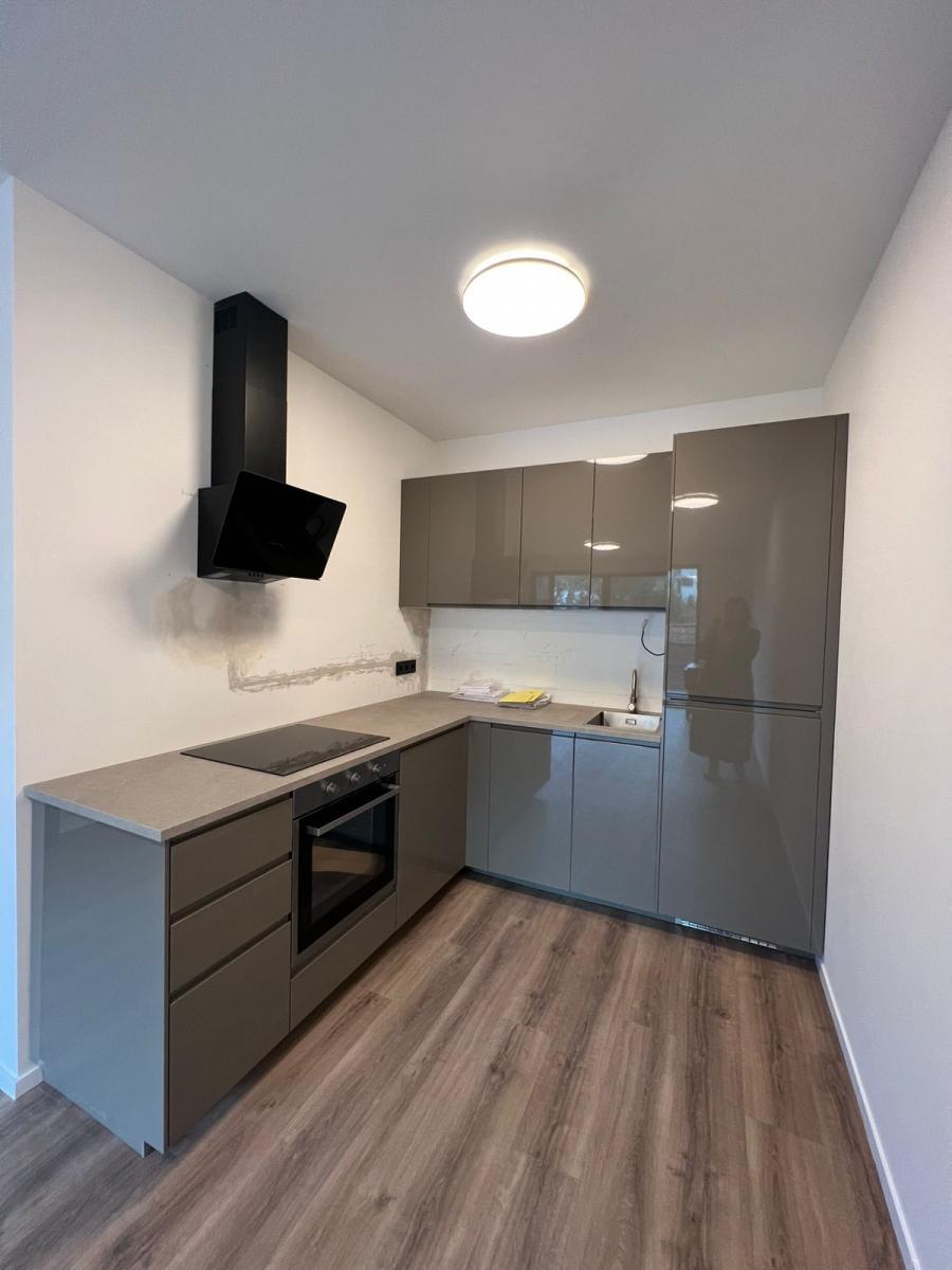 Kuchyňská linka je vybavena moderními spotřebiči, byt je částečně zařízený nábytkem připraven k okamžitému nastěhování.