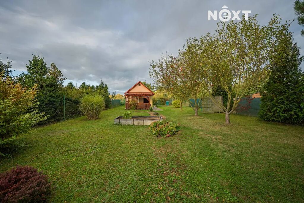 Zahrádka je pečlivě udržovaná se záhony a rostou na ní okrasné rostliny a ovocné stromy. Najdete zde chatku a zahradní domek na nářadí. Chatka má č.ev. a v její přední části je zastřešené posezení.