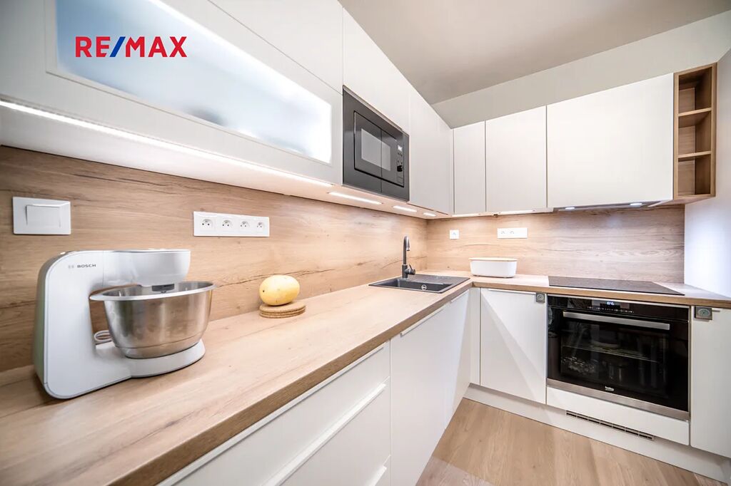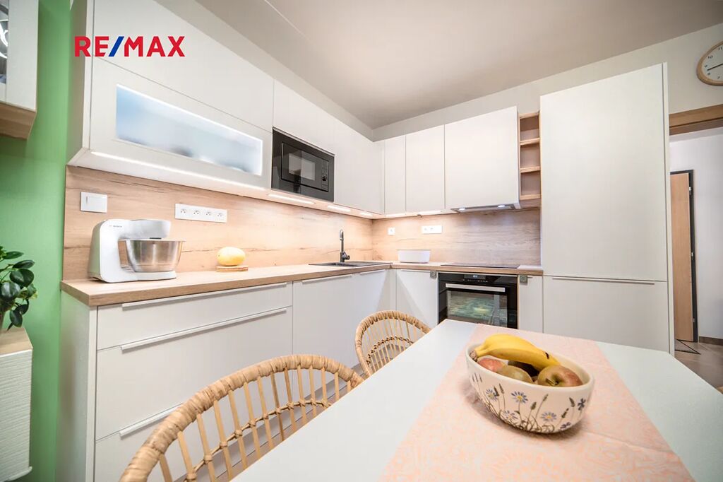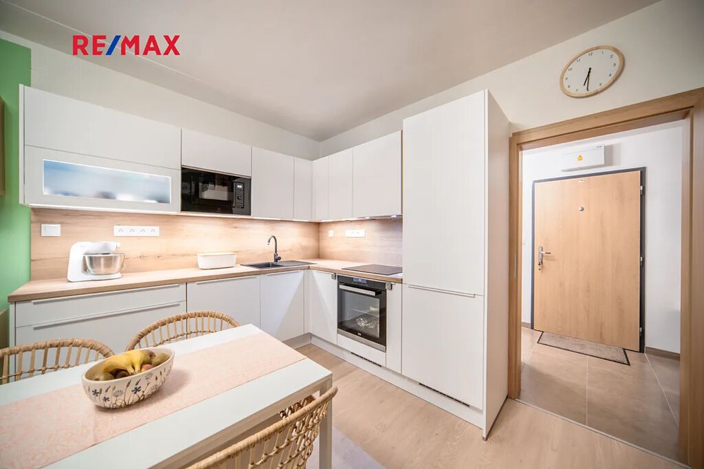 Byt je situován ve 2. patře cihlového domu s výtahem a je ve výborném stavu. Dominantou je kvalitní kuchyňská linka se všemi spotřebiči a vestavěné skříně na míru v ložnici i chodbě, které poskytují dostatek úložného prostoru.