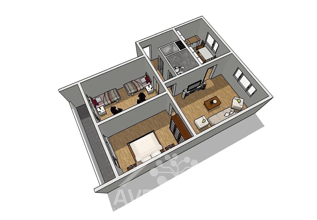 Velkoryse řešená dispozice nabízí dostatek prostoru pro celou rodinu i domácí kancelář. Balkon je orientovaný s výhledem na celé město, je osvětlený a vybaven elektrickou zásuvkou – ideální pro večerní posezení. Balkón je veden přes dva pokoje