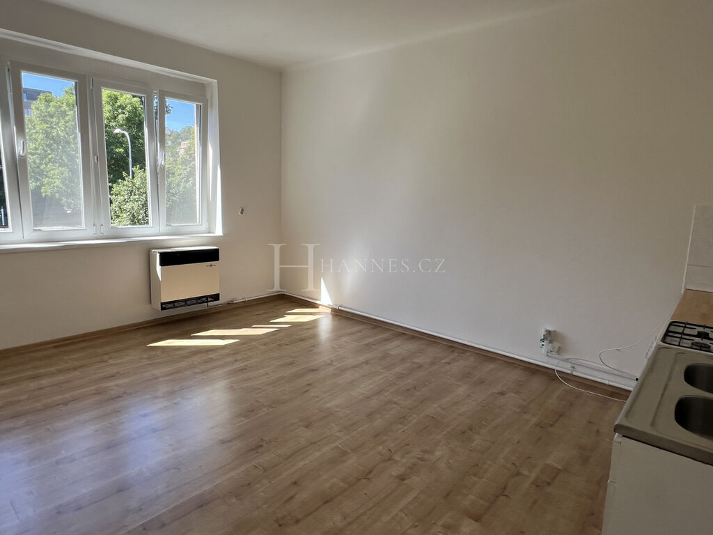 Nabízíme Vám možnost pronájmu pěkného, útulného bytu kategorie 1+kk o podlahové ploše 30,5m², po částečné rekonstrukci, situovaného do 2. patra (5x11 schodů) cihlového bytového domu o 4 patrech bez výtahu