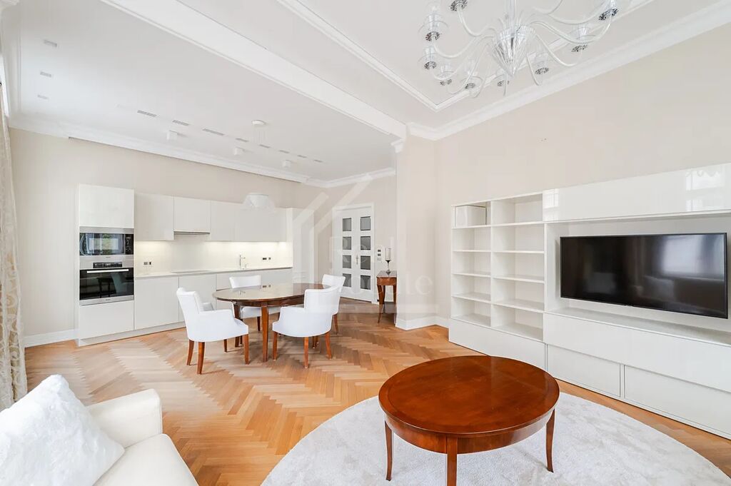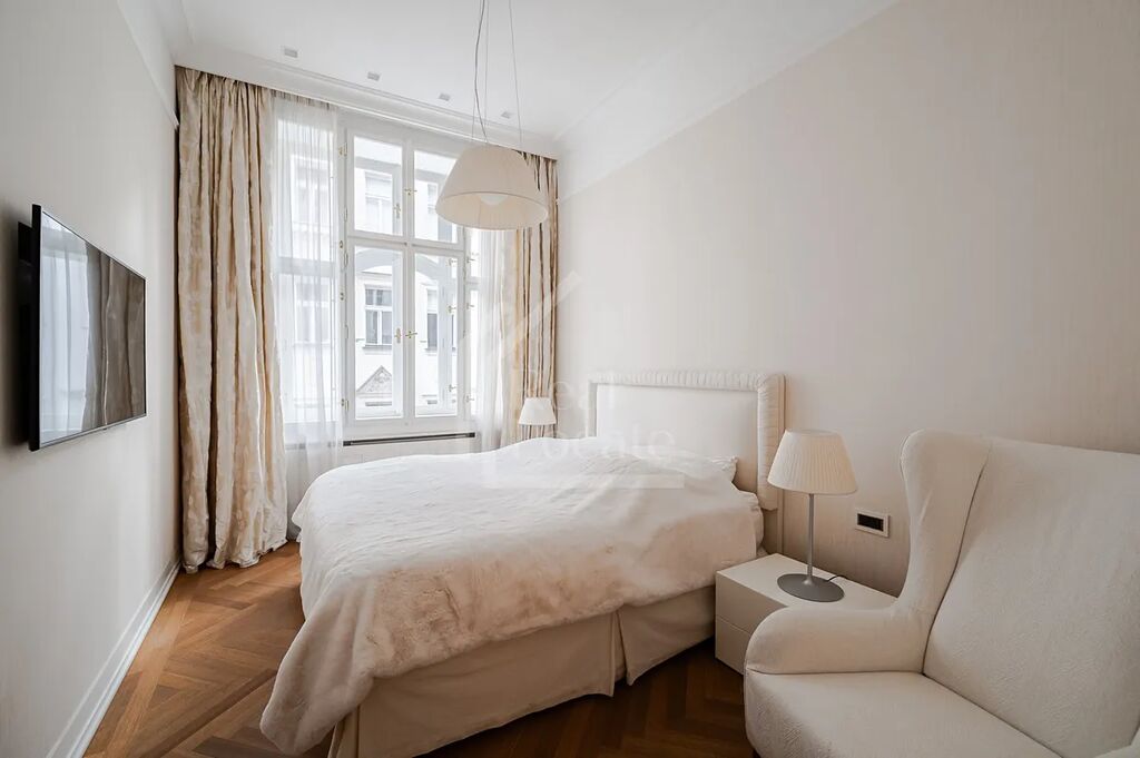 Bytová jednotka je velmi vkusně zařízena a dokončena ve vysokých standardech (dřevěné parkety, klimatizace, skříně a nábytek na míru).