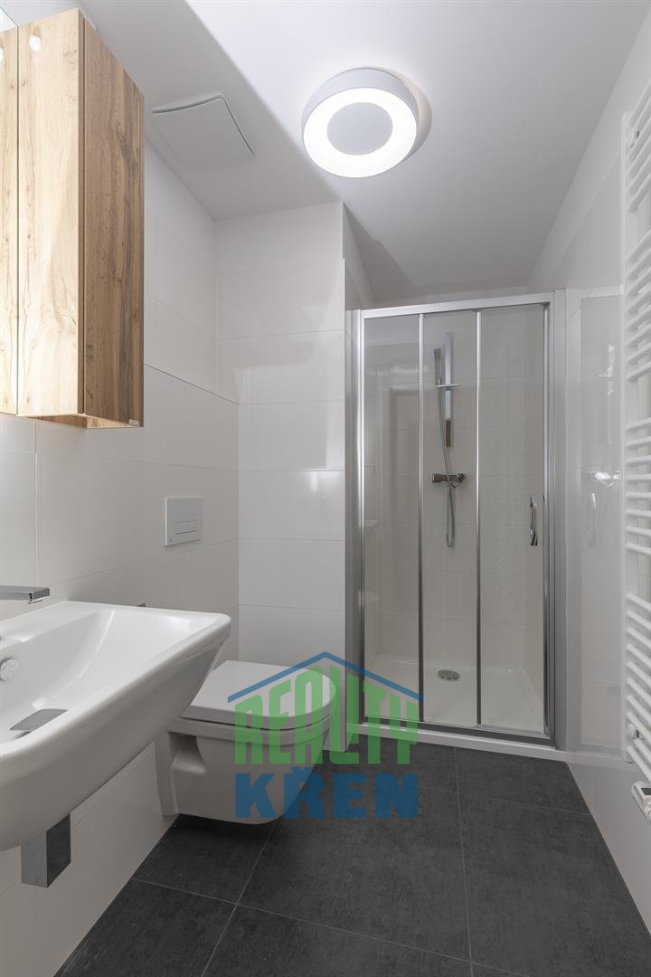 • Koupelna: Moderní, se sprchovým koutem, WC a úložným místem.