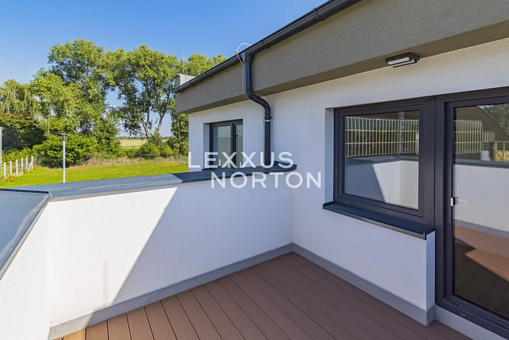 Dům s dispozicí 5+kk o velikosti 152,3 m² na dvou podlažích nabízí v přízemí pohodlný obývací prostor s kuchyňským koutem a pracovnu, v 1. patře pak 3 ložnice. U domu se nachází soukromá zahrada s terasou a 2 parkovací místa. Výdaje šetří kvalitní okna s trojskly a úsporné plynové kotle. I další prvky podporují šetrnost a zpříjemní Vaše bydlení, např. příprava na předokenní žaluzie ve všech obytných místnostech a na klimatizaci ve vybraných místnostech nebo jímka na dešťovou vodu. U parkovacích míst bude umístěna zásuvka a v areálu jsou naplánovány stojany pro rychlonabíjení elektromobilů. Zajímavým detailem je příprava na měření průtoku vody s možností uzavřít přes mobilní aplikaci její přívod.