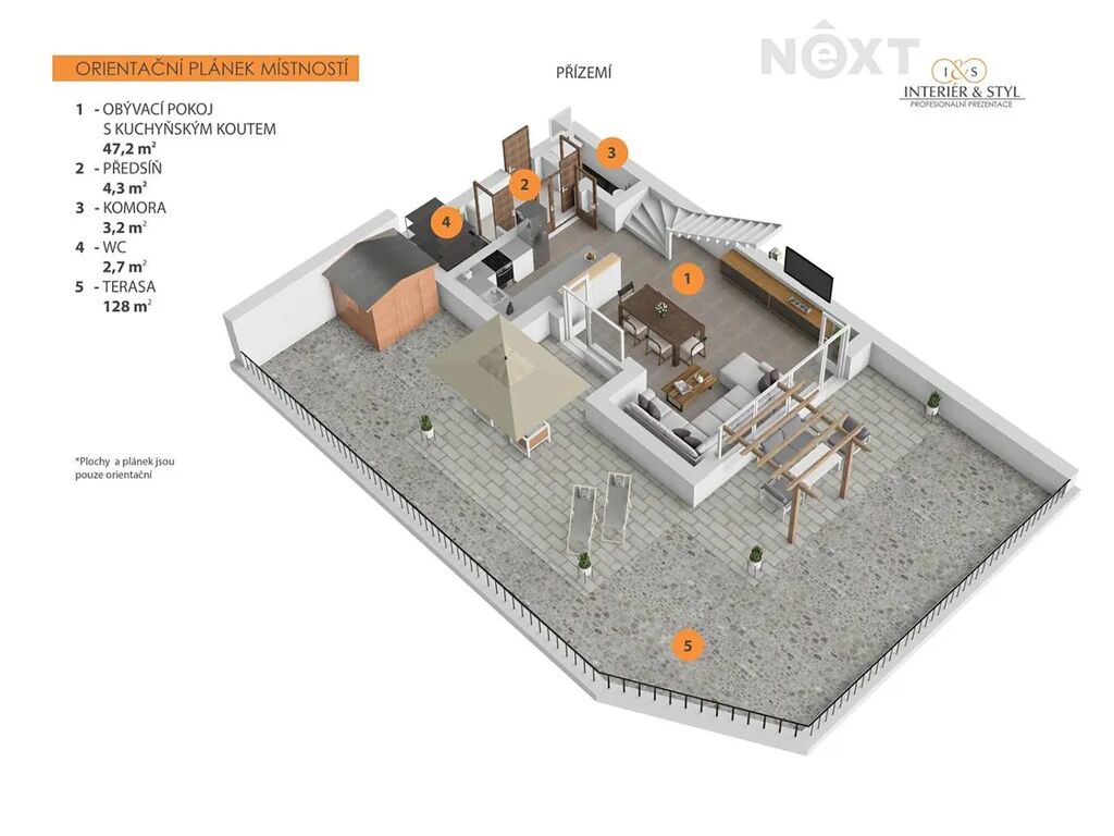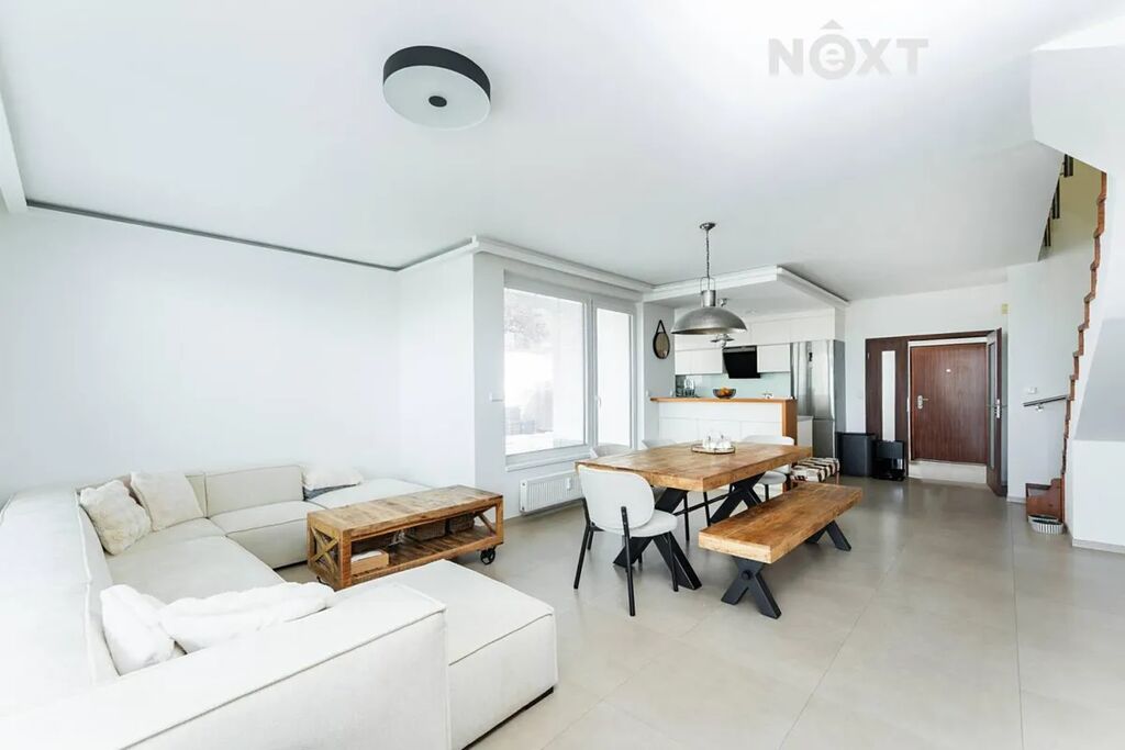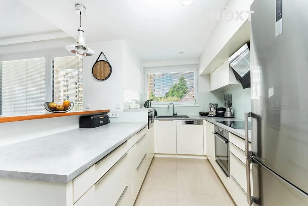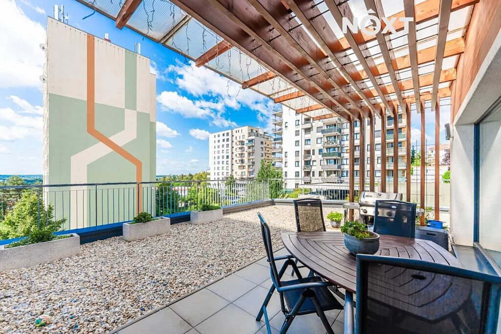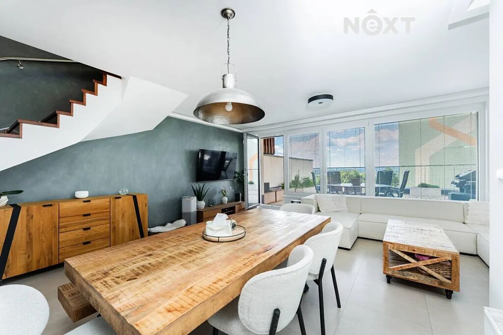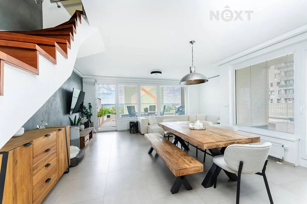 Naše společnost Vám exkluzivně nabízí k pronájmu mezonetový byt s dispozicí 4+kk (118 m2), terasou (134 m2) a prostorným garážovým stání v 1. nadzemním podlaží bytového domu v Horních Měcholupech, na adrese Nad přehradou. Dispozice bytu: vstupní chodba s prostornou komorou, samostatné wc, obývací pokoj propojený s kompletně vybavenou kuchyni a dvěma vstupy na terasu, po schodech do 1.np, kde jsou tři samostatné pokoje, koupelna s vanou a samostatné wc. Byt se nachází v klidném prostředí, kde máte vše, co potřebujete, na dosah ruky: MŠ, ZŠ obchody, lékaře, restaurace i sportovní vyžití. Pro milovníky přírody je tu blízko Hostivařská přehrada s lesoparkem, která nabízí celoroční sportovní vyžití, jak pro cyklistiku tak turistiku. Lokalita nabízí výbornou dopravní dostupnost - autobusová zastávka je kousek od domu, rychlé spojení na metro i snadný výjezd autem na hlavní tahy. Nájemné 40.000,-Kč/měs + 8.000,-Kč/měs záloha na energie a služby spojené s užíváním bytu + elektřina se přepíše na nájemce. Kauce 1 nájem, provize RK 1 nájem. Byt bude volný od 1.10.2025. Prohlídky jsou po dohodě možné i o víkendu. Pro komunikaci uvádějte evidenční číslo zakázky N112934.