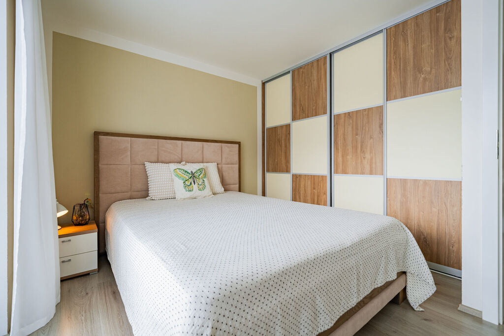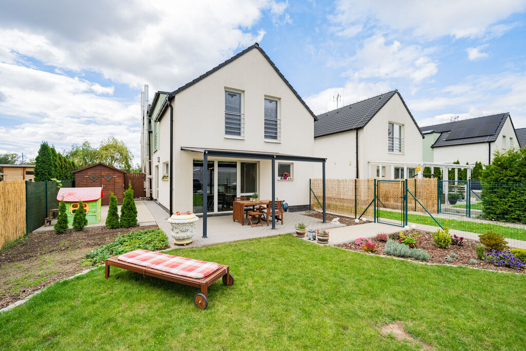 Obývací pokoj v přízemí domu s přímým vstupem na terasu a dále do zahrady, je moderně propojený s kuchyní. Ta je vybavena kuchyňskou linkou na míru se spotřebiči a je zde praktická úložná komora. V přízemí bytu je také vstupní chodba a toaleta. V patře domu jsou dva pokoje, krásná ložnice a druhý pokoj, který je v současné době rozdělen na dva, dětský pokoj a pracovnu. Koupelna je s vanou a toaletou, nechybí připojení na pračku. Topení je řešené elektrickým kotlem. Okna jsou plastová se žaluziemi. Velkou výhodou bytu je klidné bydlení, již zmiňovaná krásná, rovinatá zahrada a skvělá dostupnost Prahy či blízkých Hostivic. Parkování je pohodlné před domem.