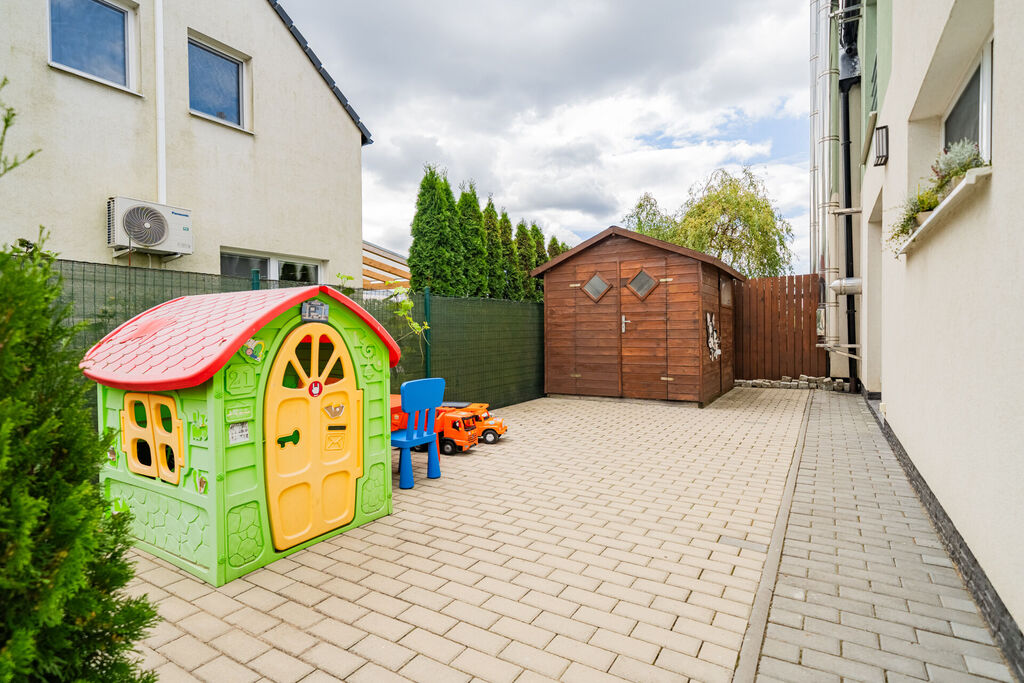 Pokud hledáte bydlení pro Vaši rodinu se zahrádkou a zároveň v blízkosti Prahy, máme pro Vás skvělou nabídku na koupi mezonetového bytu. Jedná se v podstatě o řadový dům s dispozicemi 3kk, 86 m2, zastřešenou terasou, zahradním domkem, parkováním a pečlivě udržovanou zahradou o rozloze 228 m2.
